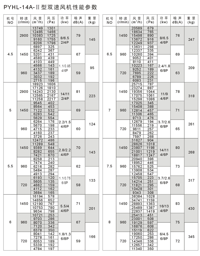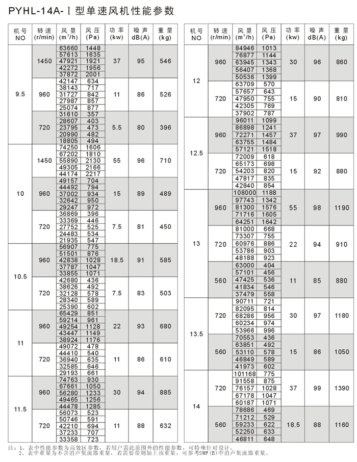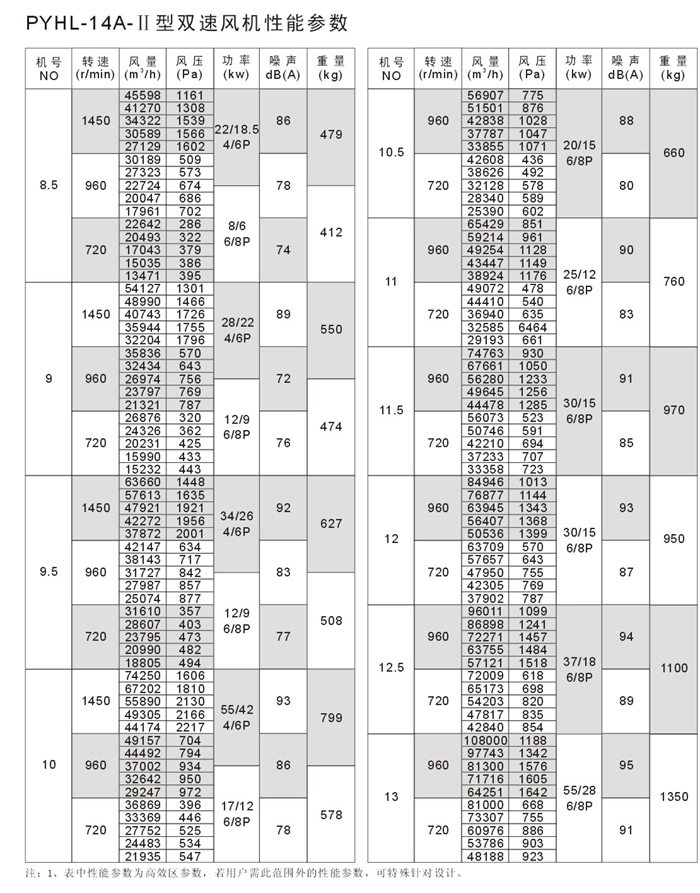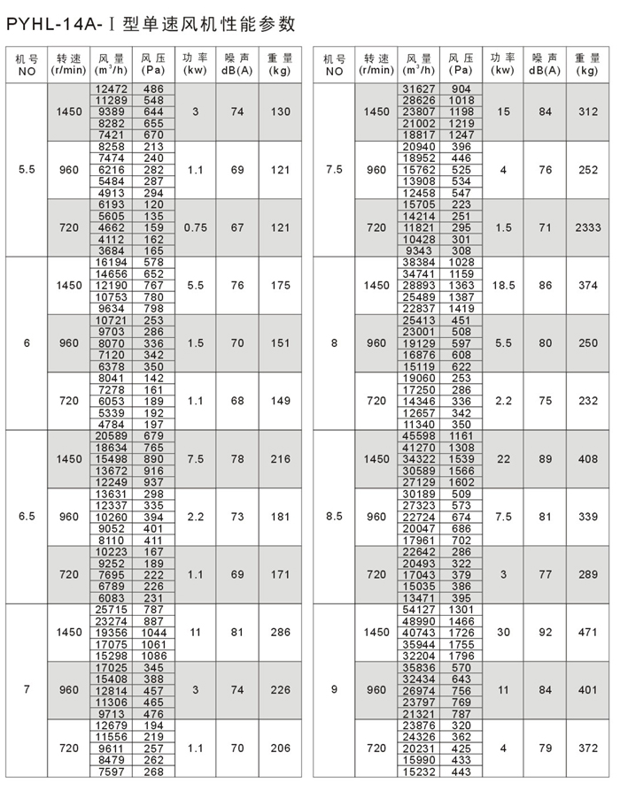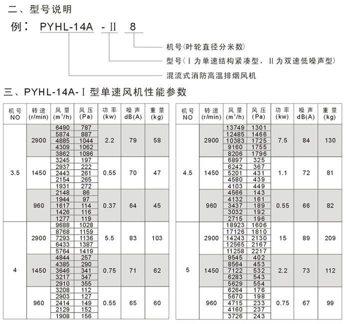 PYHL-14A風機Ⅰ型單速結構緊湊,節省安裝空間。Ⅱ型雙速在進風口設風口消聲集流器,使風機在低速排風時運轉噪音更低。