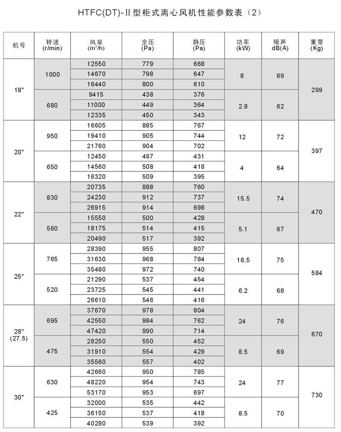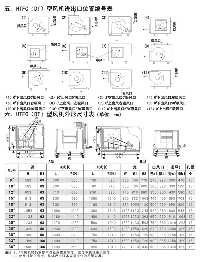 4、 HTFC(DT)系列低噪聲消防通風(兩用)柜式離心風機分為A型和B型兩種類型,A型電機裝在箱體外,用于消防排煙;B型電機裝在箱體內,用于通風換氣。