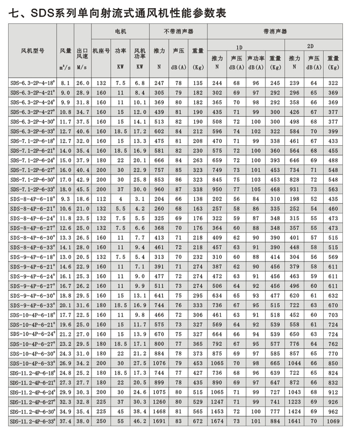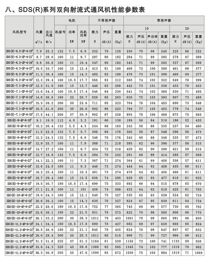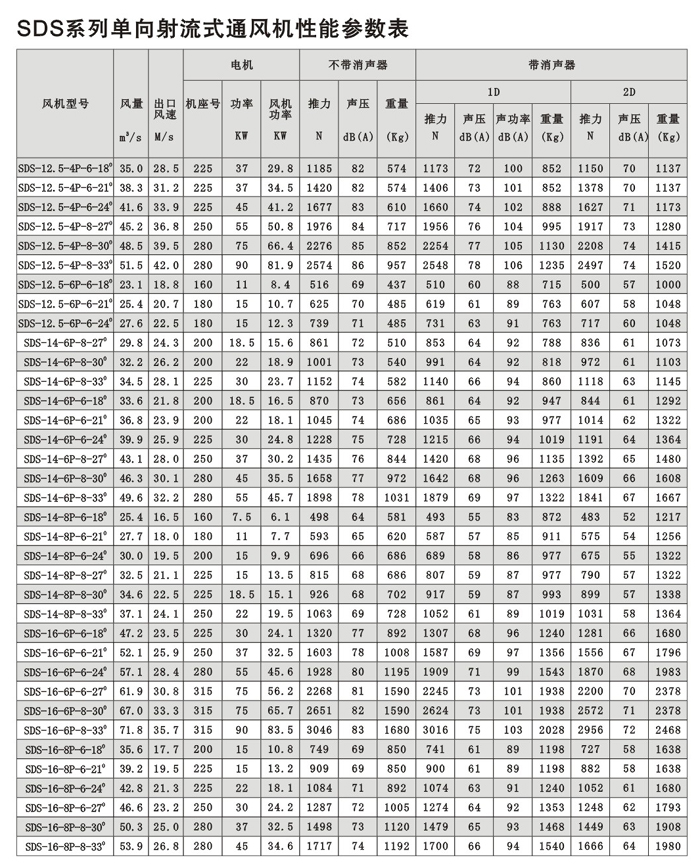 概述 SDS系列射流風機規格自630mm~1600mm,分單向運轉軸流風機和可逆式(雙向)運轉軸流風機二大類,****推力有3500N,對任一負荷和工況均可選擇高效、低噪聲的風機。 SDS系列射流式通風機采用先進的工藝取得良好的質量保證,風機外殼采用美國進口的專用機床旋壓翻邊成形,葉輪段內壁經金加工,既保證機殼的同軸度和強度,又保證葉片徑向間隙,外表經熱浸鍍鋅或其他等效涂裝處理,外形美觀并防腐,性能優良,風機葉片、輪轂采用日本東芝公司全自動數控鏜銑加工中心加工成壓鑄模型腔,分別在高壓鑄造和低壓鑄造機進行鋁合金高(低)壓鑄成形,經公路隧道、鐵路隧道、水利大壩工程等用戶實際使用證明,該風機各項性能指標及耐腐蝕、可靠性、經濟性等技術、質量要求和經濟指標完全能適應各類隧道、地鐵的使用。 產品使用狀況說明 在地鐵、公路隧道、鐵路隧道等基礎工程建設中、其空氣質量標準、安全因素靠風機強制通排風達到要求。就通風系統而言,要長期保持良好的空氣質量,否則對人體有害,如圖說明。 隧道通風系統設計和產品選型依據 交通隧道原則上可分為三類:即地鐵、公路隧道、鐵路隧道。 常規運行及緊急狀態下運行安全性、可靠性的先決條件是安裝確保各系統之間協調并充分發揮作用的環控系統。 A 機械系統:通風、消防’、排污 B 動力系統:供電、輸配電、緊急電力 C 燈光系統:通燈照明、局部照明、熒光指示 D 通信系統:電話、無線電、計算機終端 E 交通系統:燈光、信號、標志、監視 F 控制系統:交通狀況和設備狀況和設備運行狀況的監控 隧道通風系統可以有如下三種基本方式或可采取混合方式。 1 縱向通風系統:這是最基本的通風方式。新風氣流從隧道入口端流向出口端,沿隧道縱向無需安裝通風管道。該通風方式一般選用可逆轉射流風機。將風機安裝在隧道頂部或側面,可二個方向全面通風,以達到雙向通風或控制煙霧; 若隧道較長則必須附加中央送、排風豎井,豎井與大氣相連,組成混合通風方式。 2 全橫向通風系統:沿隧道方向設置送、排風道,新風集中從風亭采集,排風集中從風塔排除,一般將送風道設置在路面以下,排風道設置在車道上部,送風道與排風道每隔一定間距設有送、排風口,在事故工況下沿隧道橫斷面及時排風,由此抽出煙霧。 3 半橫向通風系統:該系統又可區分為送風型半橫向通風方式和排風型半橫向通風方式,一般采用排風型半橫向通風方式,新風從洞口進入,排風相似全橫向通風系統。 4 隧道通風系統應考慮的因素: A工程投資 B 電力容量 C 運行費用 D 空氣質量 E 安全因素 F 緊急狀態下的保證措施 上述因素經濟綜合后確立最優化方案 5、隧道通風系統通風機數量、機號選擇的因素: A CO、NOx及煙霧濃度 B 車流量(車輛密度、時速) C 風力負荷(隧道長*寬*高) D 廢氣排放(車齡、數量) E 發生火警時的應急措施 6、隧道通風系統推力計算理論依據 1 隧道通風系統推力計算依據 入口出口阻力損失 ?隧道表面及設備等摩擦系數 車輛摩擦系數(在最劣勢的條件下計算車輛運動或活塞風效應) 最劣勢條件下洞外風速對出、入口的影響 ?隧道地形、位置(坡度、海拔) 發生 火警時所需的推力(溫度、壓力、時間) 2 隧道降壓(Pa)理論轉換為射流風機所需的推力(N) 射流式通風機的推力是風機進口與出口的動量變化,既風機推力 N=C*質量流量*氣流速度(N) 式中:N=風機靜推力(LSO)N值 C=經驗修正系數 質量流量=空氣密度*體積流量 隧道中使用的射流風機與隧道內氣流之間的相對速度、隧道內摩擦系數和同組平行布置影響有關,所以,射流風機的有效推力為: N=N*(1-V/V)C*C 式中:N=風機有效推力(N) V=隧道內風速(m/s) V=射流速度(m/s) C=隧道內摩擦系數 C=同組平行布置流向損失(該損失如風機機組之間相隔風機直徑100倍,使射流速度不影響順氣流方向的運行條件可以不考慮)。 7、隧道通風系統應用通風機的結構特點 隧道式通風機分單向射流風機(SDS)和雙向射流風機【SDS( R )】二種通風形式 風機本體、消聲器、支架腳:采用鋼板數控自動焊接和機制成型,外表采用表面涂裝處理,以保證風機強度和防腐蝕 風機葉輪:為滿足隧道通風的需要,SDS系列風機可改變葉片數和改變風機葉片角度 消聲器:消聲器長度通常為風機直徑的一倍,當噪聲要求高時,亦可以取風機直徑的二倍,消聲器與風機本體采用螺栓固定。 配套電機:SDS系列射流式通風機配套電機為鼠籠全封閉式,電機設有法蘭安裝盤,電機絕緣等級為H級,防腐等級為IP55,電機引出電纜可接至風機本體機殼上的接線盒,電機帶有潤滑油脂嘴,外接金屬軟管接至風機本體機殼上的潤滑油脂嘴。 風機可逆切換時間:在緊急狀態下,射流風機正反切換時間極為重要,SDS(R)型風機有電子式和機械式二種切換方法,可以在30秒內正反切換到風機額定轉速。 SDS系列射流式通風機試驗檢測 推力試驗:采用推力試驗裝置測得。 高溫消防試驗:由公安部天津消防試驗檢測中心測試。 噪聲測試:風機進出口裝消聲器和不裝消聲器均在空曠的場地上進行測試(大氣風速接近0時),風機聲壓級的測試為沿風機軸線45°角距風機10m處測得。 風機效率:風機運行效率采用測定推力(N)及電機輸入功率(KW)為定義。 該試驗檢測均由上建公司工程技術中心(試驗研究中心)嚴格按國家、行業有關標準進行,并經省級、******權威監督機構試驗檢