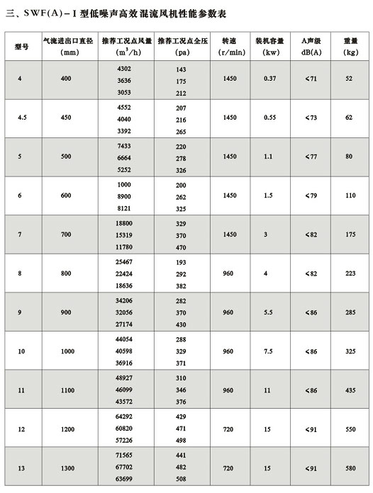 SWF(A)【HLF】系列低噪聲混流式通風(fēng)機(jī)