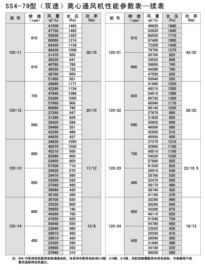 SS4-79系列雙速噪聲離心式通風機,以4-79型離心式配變極多速三相民步電機構成,使風機在保留原型風機優特點的同時,又具有轉速可調,風量及風壓可在大范圍內變化,結構簡單,價格合理的優點,可以一機兩用,節省投資和運行費用。