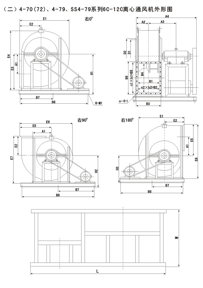 注:F4-72/79為防腐型離心風機,用于輸送有腐蝕性的氣體,用玻璃鋼為制作材料。
